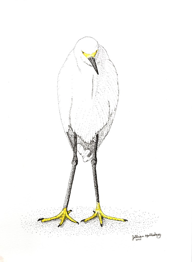 Jillian works primarily in watercolor. Many of her images start off in ink using a painstaking method called stippling. These drawings are then the basis for her coastal art watercolor works.