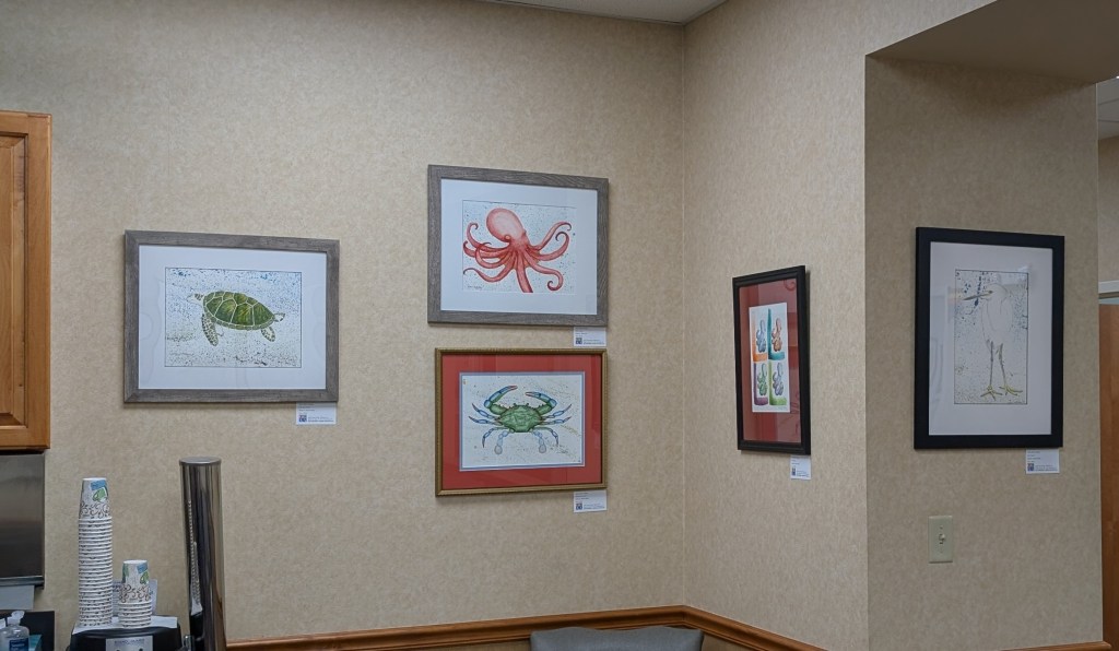 We recently hung ten pieces in one of the waiting rooms of the Eye Institute. Five of them are from my exhibition “White Birds & Black Ink”.
