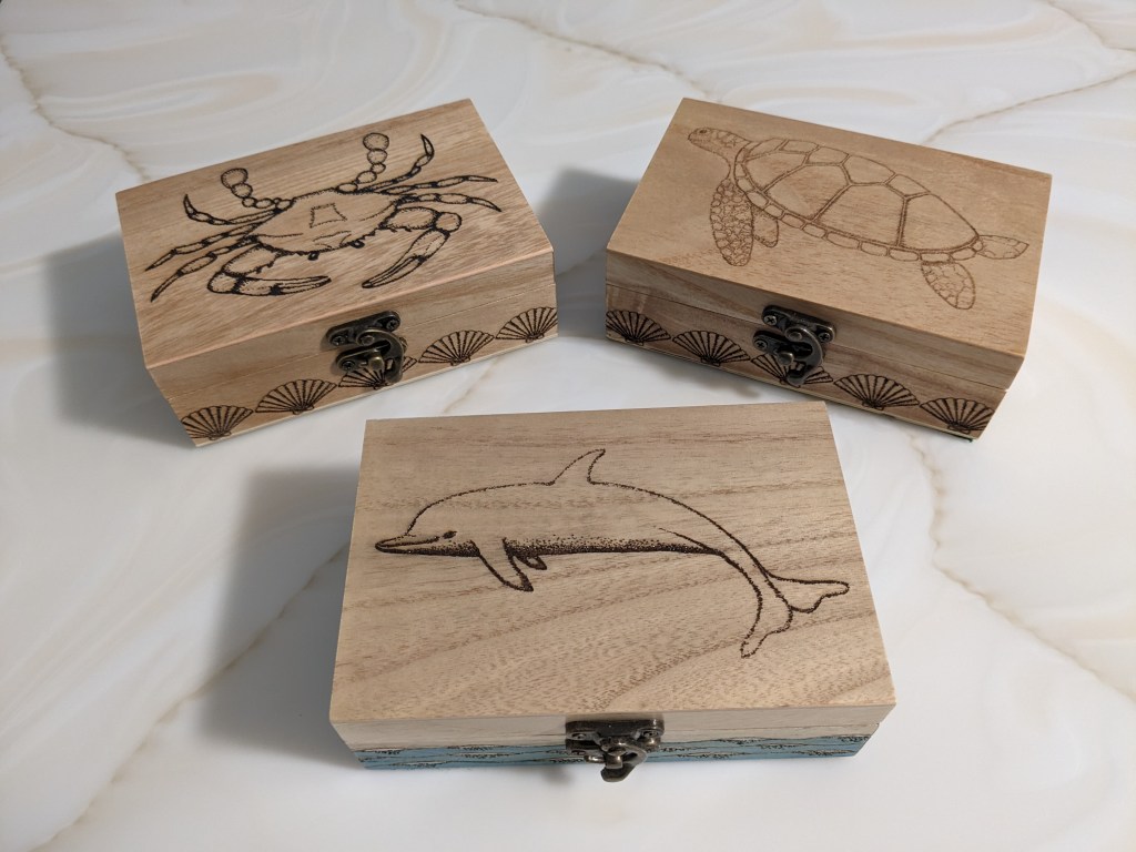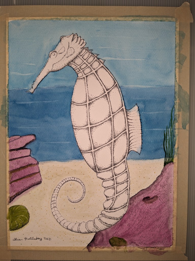 Here are some coastal art paintings and the stippled drawing they start as. The little octopus was the first drawing I did with that technique in 2019.